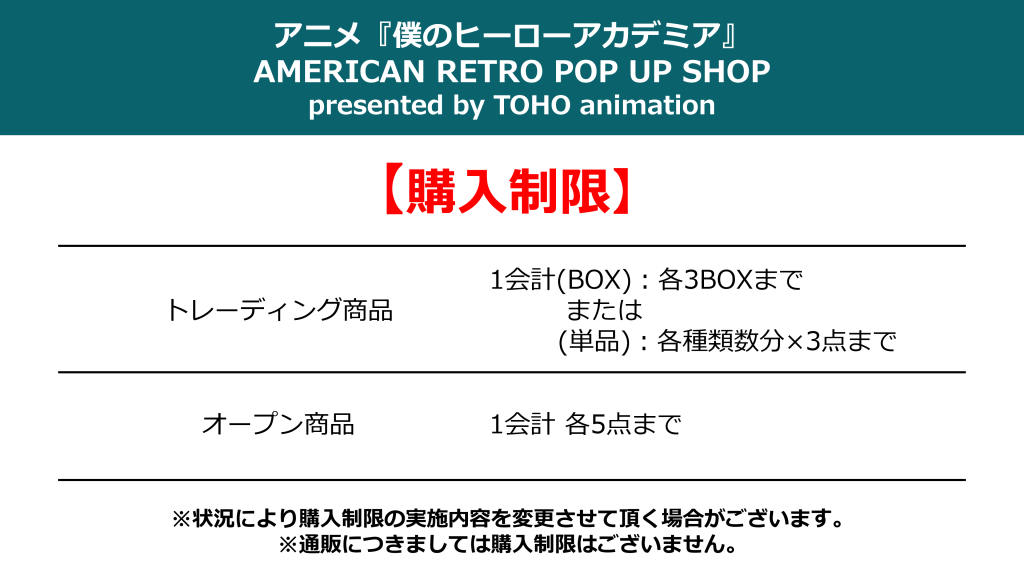 アニメ『僕のヒーローアカデミア』AMERICAN RETRO POP UP SHOP presented by TOHO animation 開催決定!