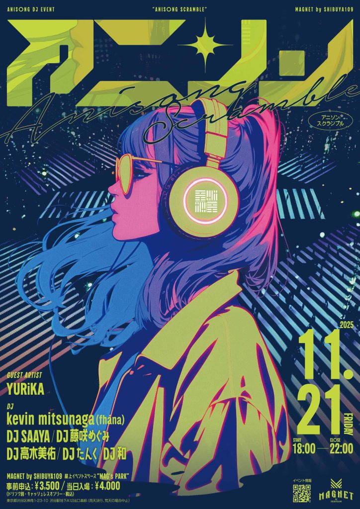 11月21周日 (周五) 將在屋上“MAG’s PARK”舉辦動漫DJ活動『Anisong Scramble』!